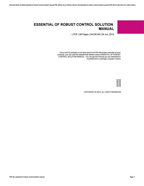 Read ESSENTIAL OF ROBUST CONTROL SOLUTION MANUAL Ebook Doc By Click Button. ESSENTIAL OF ROBUST CONTROL SOLUTION MANUAL Ebook it’s easy to recommend a new book category such as Novel, journal, comic, magazin, ect. You see it and you just know that the designer is also an author and understands the challenges involved with having a good book. You can easy klick for detailing book and you can read it online, even you can download it